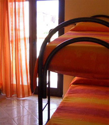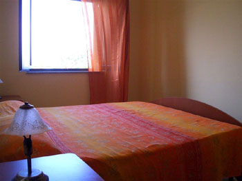 La seconda camera da letto dispone di un letto a castello e un letto singolo per un complessivo di tre posti letto con comodino lampada e armadio.